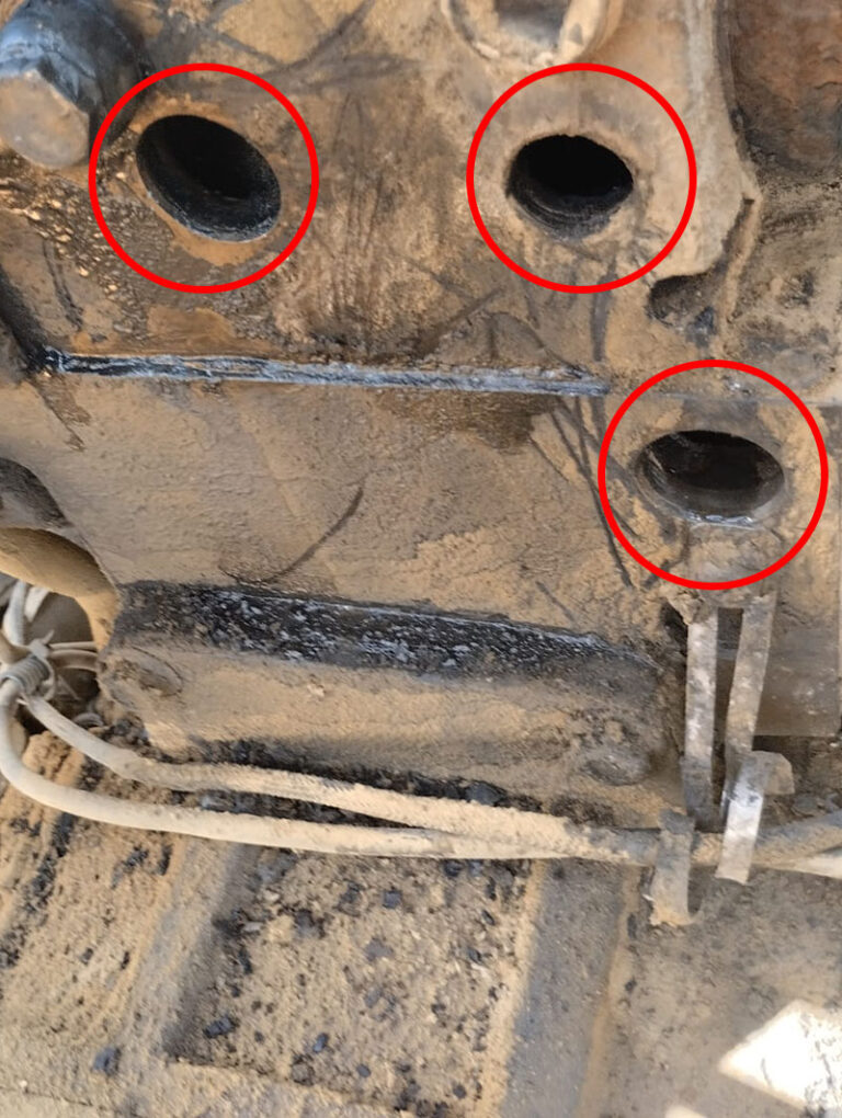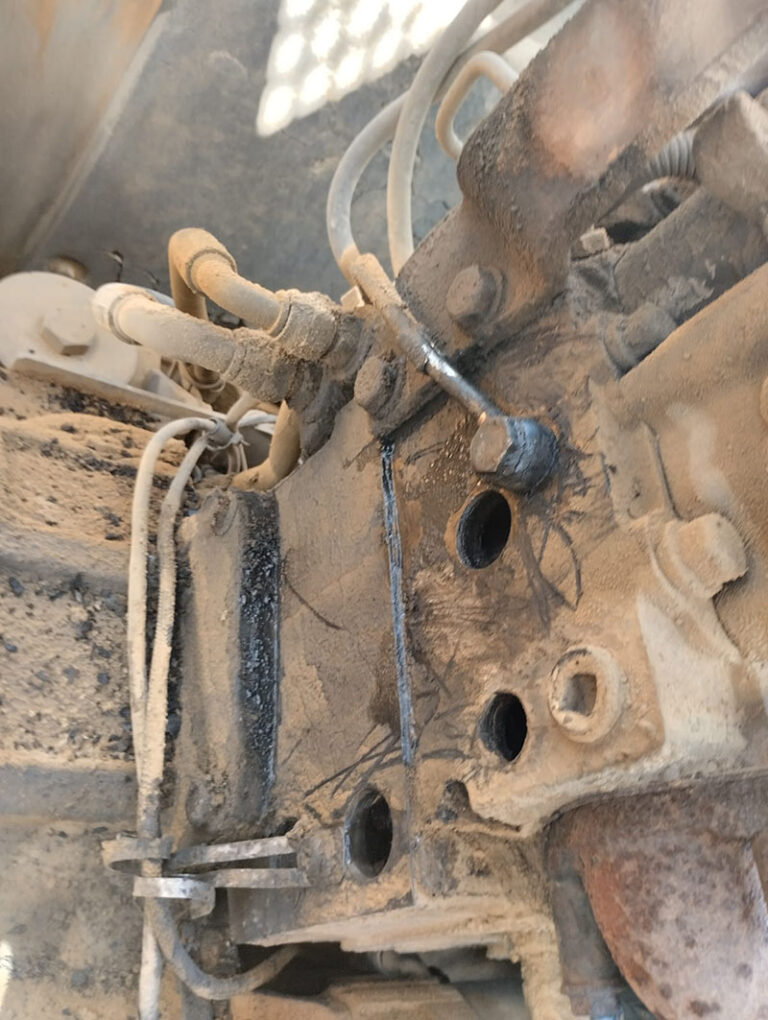 Aslında su kaçağının bir çok sebebi vardır. Sıradan ve akla ilk gelen neden; radyatör hortumlarından ya da radyatör geri dönüş hortumlarında çatlaklar oluşabileceği ihtimaliydi. İş makinesinin bulunduğu konuma gittiğimizde motordaki su kaçağı kesilmiş görünüyordu ve arızayı tespit etmek için çalışmalara başladık. Akla ilk gelen radyatör hortumlarının kontrolüydü. Kontrollerimizde radyatör hortumlarının sağlam ve sızdırmaz olduğuna emin olduk ve tek bir seçenek kalıyor geriye; motor emniyet tapalarının çürümüş olacağı ihtimali üzerinde durmaya başladık. Ve hemen Hyundai 320LC’nin motor kapaklarını açarak, egzoz ve manifoldu söktük. Motordaki tapalardan çok az miktarda su sızdığını gördük. Aslında müşterimiz motordan sızan suyun çok fazla olduğunu söylemişti fakat, motor içerisinde biriken tortulardan dolayı çürüyen tapa deliği tıkanmış haldeydi. Bu sebepten su sızar vaziyette akıyordu. Tapaların ucunu bir miktar temizlediğimizde gördük ki, motor emniyet tapasından sızan su iyice arttı.