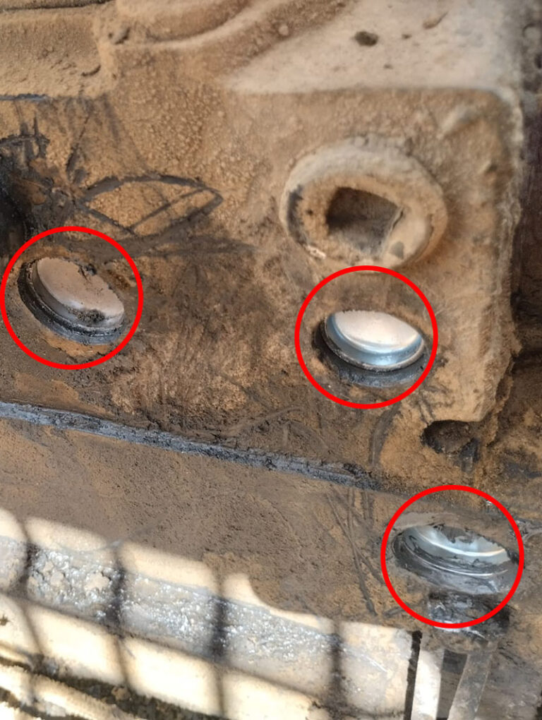 Hemen iş makinesini stop ederek çalışmalara başladık. Emniyet tapaları sürekli ani sıcaklık değişimlerine maruz kaldığı için zamanla çürüyebilir. Bu gibi durumlarda emniyet tapalarının yenilenmesi gerekir. Hemen emniyet eski emniyet tapalarını sökerek vida yuvalarını iyice temizledik. Daha sonra yeni motor tapalarını yerine takarak, iş makinesinin eksiler suyunu tamamladık. Böylece artık Hyundai 320LC tamiri bitirilerek iş makinesi çalışmaya hazır hale getirildi.